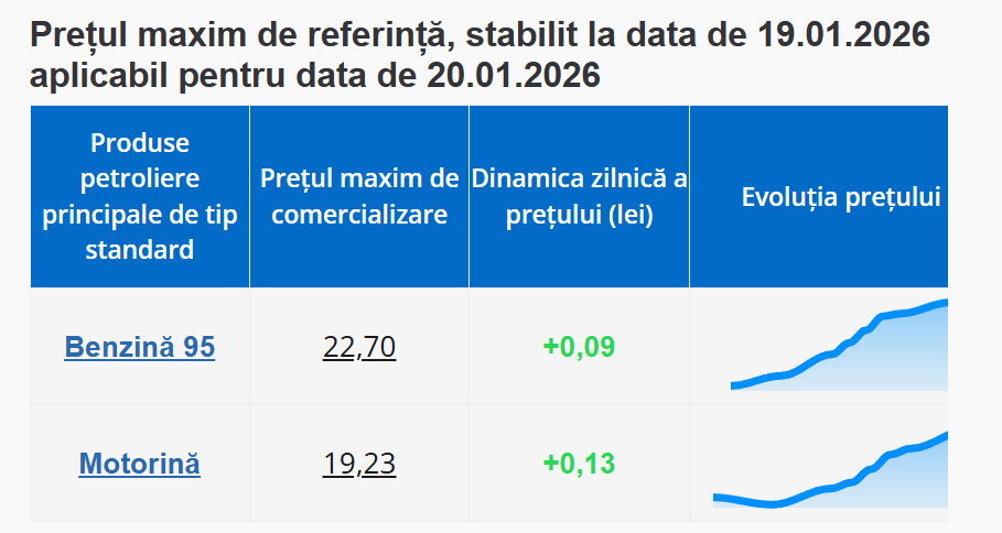 Agenția Națională pentru Reglementare în Energetică (ANRE) a afișat noile prețuri la carburanți pentru mâine, 20 ianuarie.