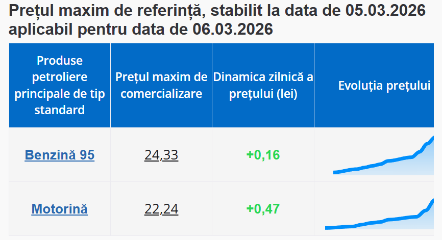 Agenția Națională pentru Reglementare în Energetică (ANRE) a afișat noile prețuri la carburanți pentru vineri, 6 martie.