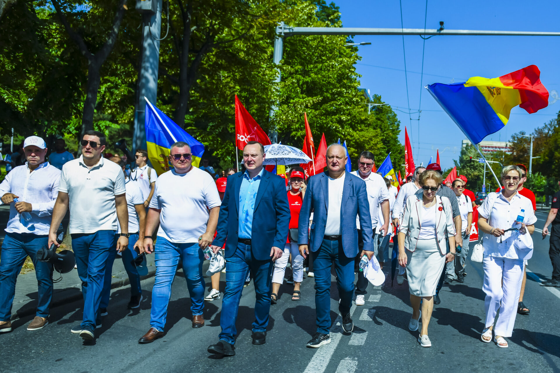 Conducerea, membrii și susținătorii celor patru formațiuni politice care au anunțat crearea blocului electoral patriotic: PSRM, PCRM, „Inima Moldovei” și „Viitorul Moldovei” au organizat astăzi un protest în centrul Chișinăului.