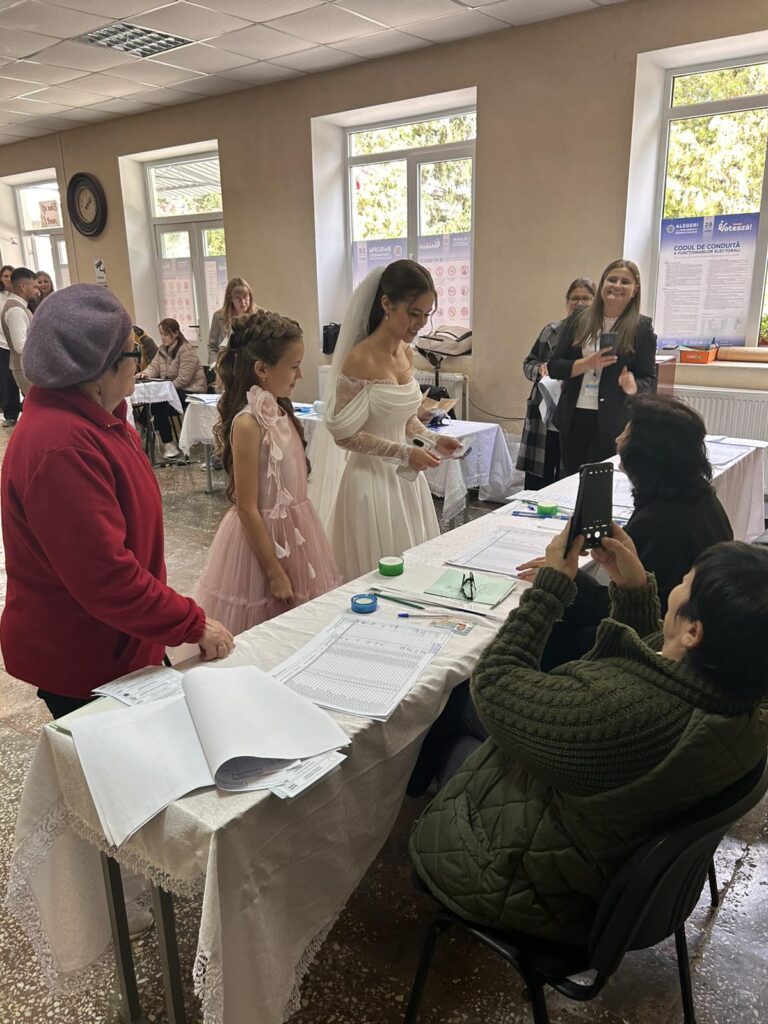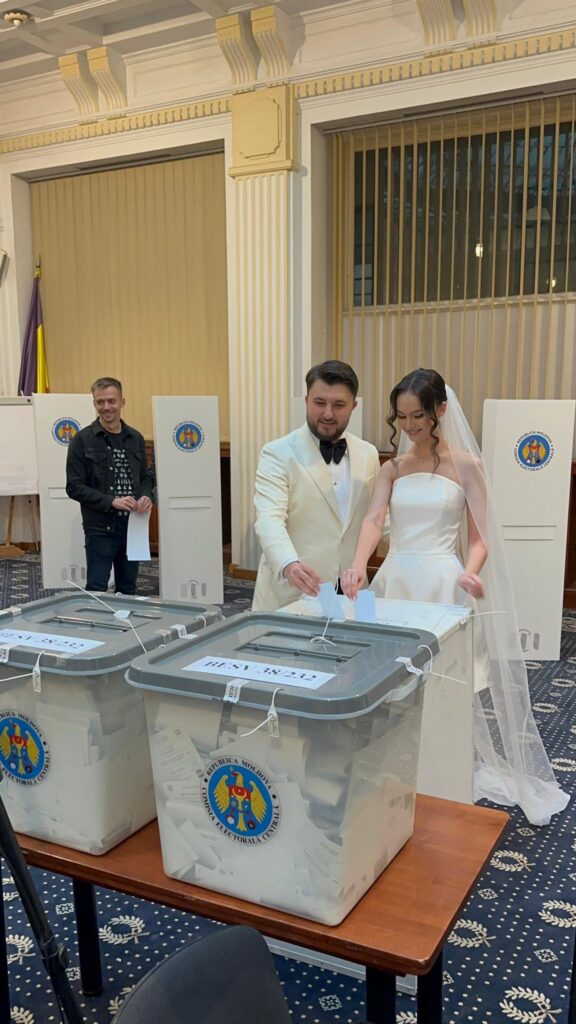 Tot astăzi, un alt cuplu din Făleștii Noi au ales să treacă pe la secția de vot înainte să pornească petrecerea de nuntă. Astfel, ei au spus un „DA” ferm nu doar unul altuia, ci și viitorului Republicii Moldova.