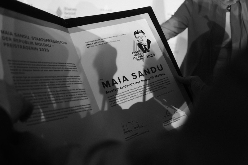 Președinta Republicii Moldova, Maia Sandu, a primit Premiul Franz Josef Strauss, acordat de Fundația Hanns Seidel în cadrul unei vizite oficiale în Bavaria. Distincția recunoaște angajamentul ferm al șefei statului pentru consolidarea democrației în Republica Moldova.
