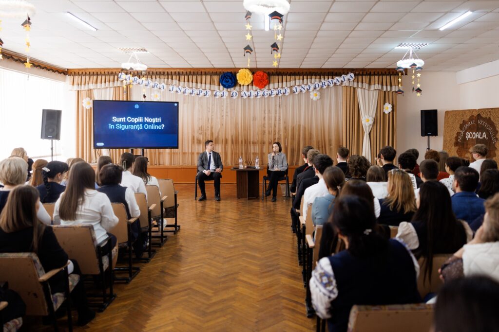 Totodată, președinta a participat și la o nouă rundă a dialogului național despre siguranța copiilor în mediul online, care a a avut loc la Liceul „Ion Creangă” din Ungheni.