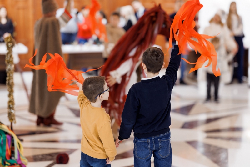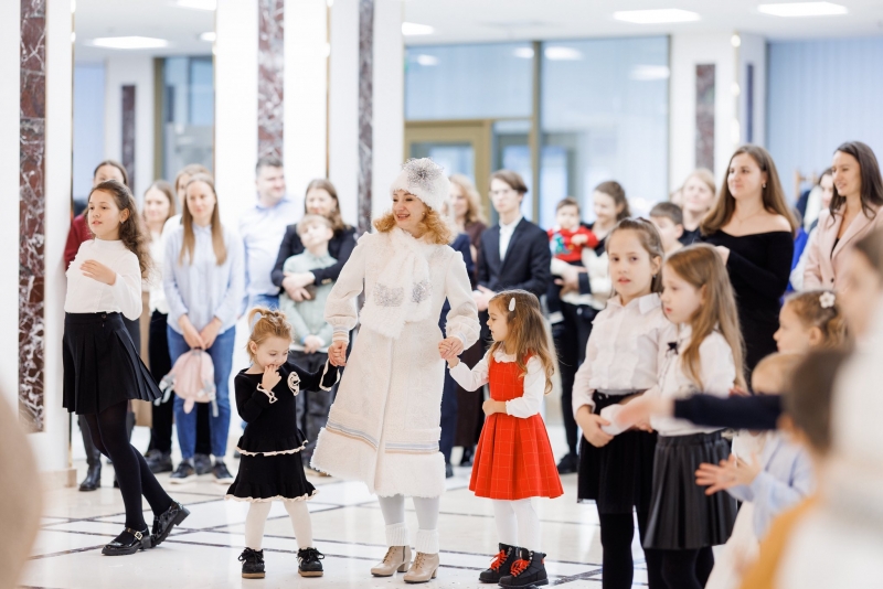 Cei prezenți la sărbătoare s-au distrat împreună cu un grup de artiști de la Teatrul Republican de păpuși „Licurici” și au confecționat jucării pentru brad.