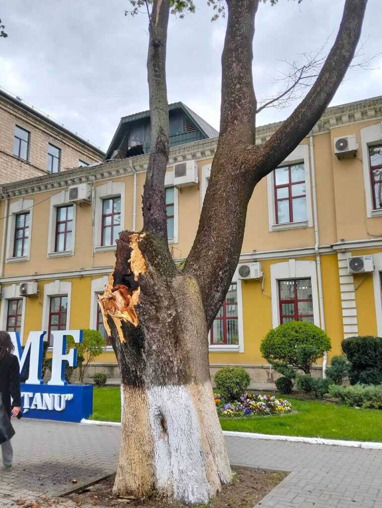În sectorul Ciocana, cinci automobile au fost deteriorate, după ce peste ele au căzut patru arbori și un panou publicitar. În toate cazurile, autoritățile au confirmat că nu au fost înregistrate victime.
