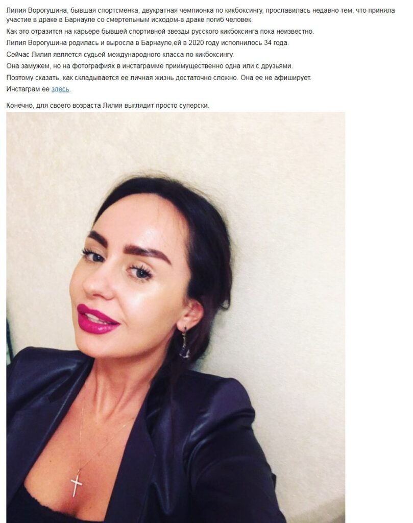Reporterii Deschide.md au identificat că printre aceștia se numără și Lilia Vorogușina, arbitru la kickboxing. Aceasta este cunoscută pentru faptul că acum 5 ani a participat la o bătaie din Barnaul, soldată cu deces. În acest dosar Vorogușina are statut de „martor”.