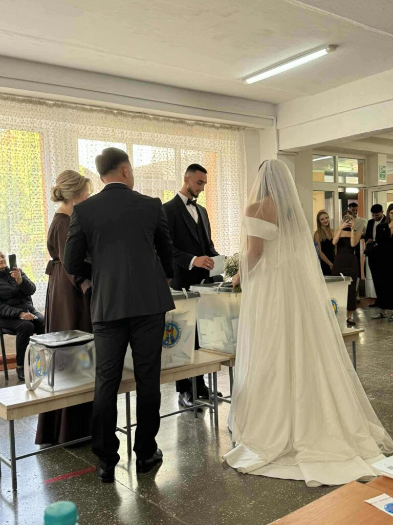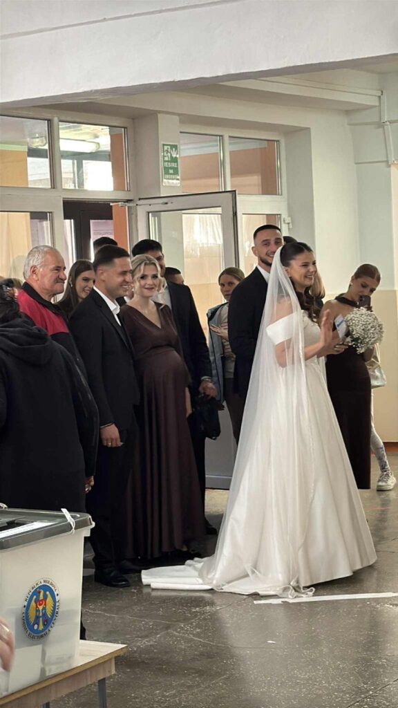 Un cuplu din Drochia a mers la vot imediat după ce și-a unit destinele. Îmbrăcați în haine de mire și mireasă, tinerii și-au exercitat dreptul de vot.