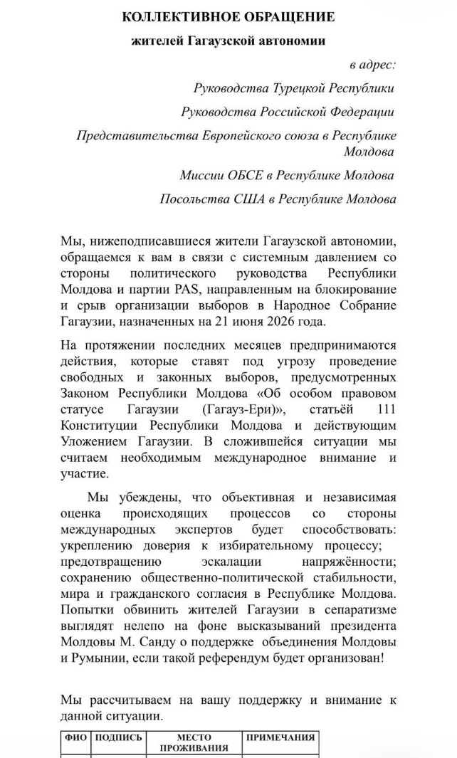 Unitatea Teritorial-Autonomă Găgăuzia revine în atenția opiniei publice după apariția unor acțiuni organizate de mobilizare civico-politice desfășurate la nivel local, care implică distribuirea de materiale informative și colectarea de semnături pentru o adresare colectivă către mai mulți actori internaționali.