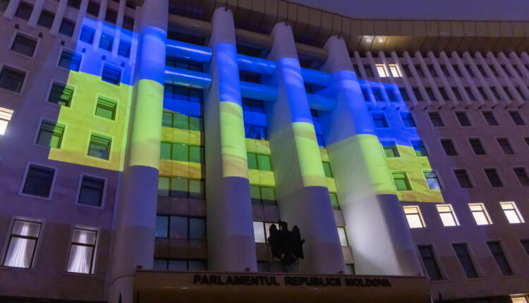 Menționăm că, aseară, clădirea Parlamentului de la Chișinău a fost iluminată în culorile drapelului Ucrainei, în semn de solidaritate și susținere a poporului ucrainean. Ucraina a fost atacată de Rusia la 24 februarie 2022.