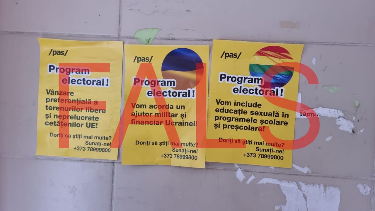 Partidul Acțiune și Solidaritate (PAS) anunță că în spațiul public au fost distribuite afișe false atribuite formațiunii.