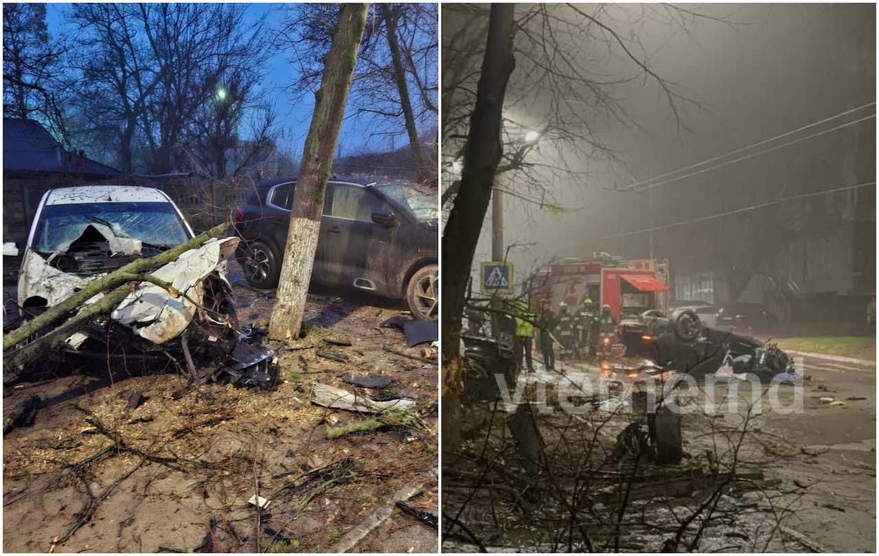 Conform datelor preliminare, un tânăr de 25 de ani, aflat la volanul unui automobil de marca Audi, ar fi pierdut controlul direcției de mers în circumstanțe care urmează să fie stabilite. Vehiculul a derapat pe trotuar, lovind cinci mașini parcate, după care a intrat într-un copac și s-a răsturnat.