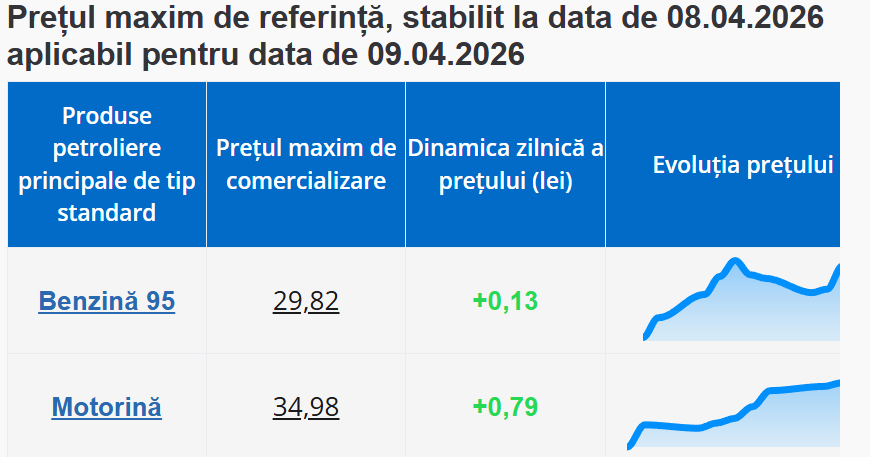 Menționăm că, în ultima lună, pe fondul situației tensionate din Orientul Mijlociu, prețurile la carburanți au înregistrat creșteri semnificative.