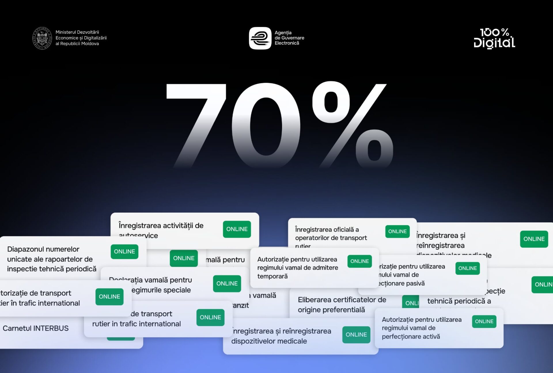 Potrivit autorităților, din totalul de 407 servicii publice dedicate antreprenorilor și întreprinzătorilor, 284 pot fi accesate deja în format digital, eliminând astfel drumurile inutile la ghișee și simplificând interacțiunea cu administrația publică.