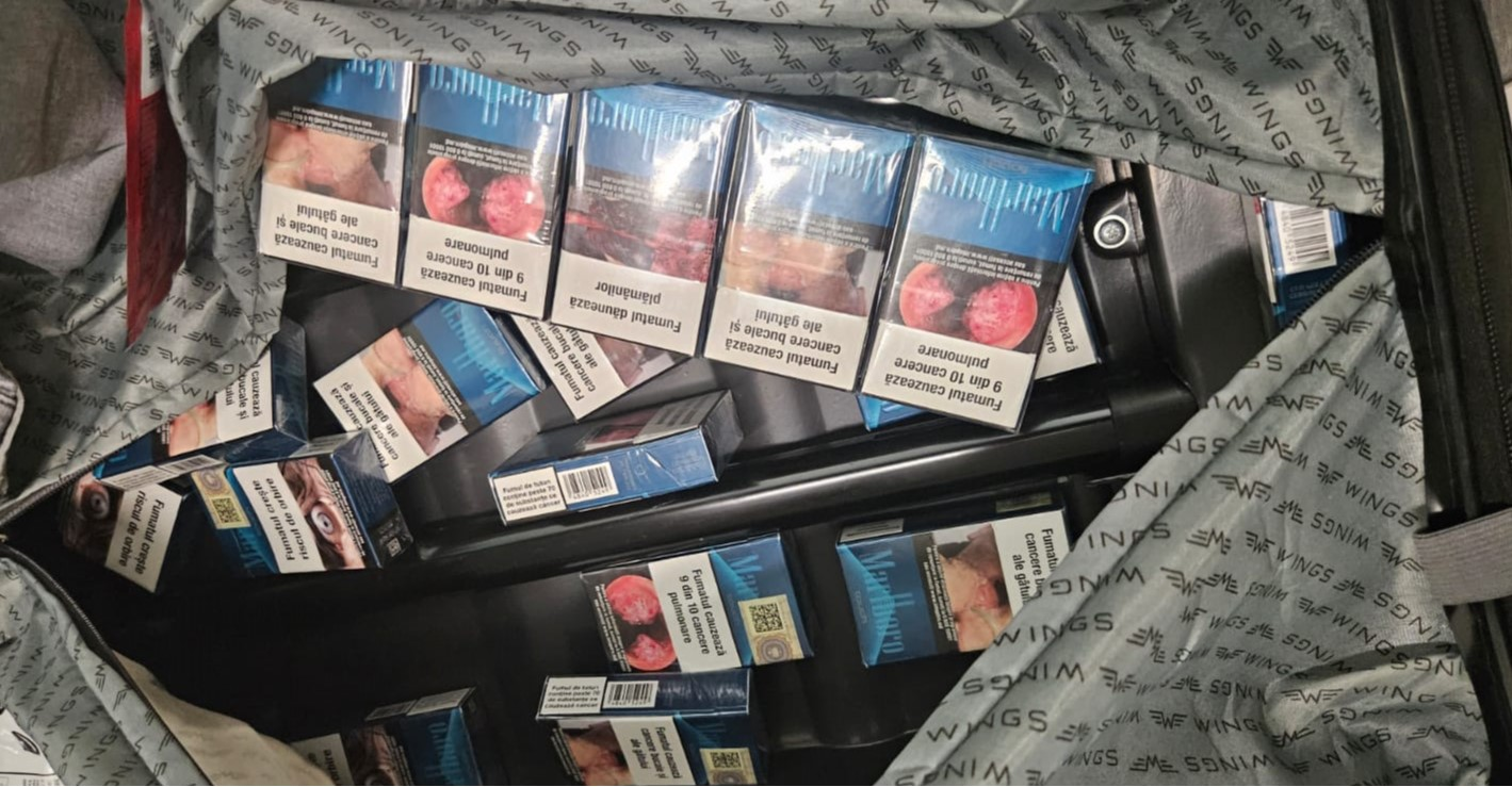 Un cetățean român, în vârstă de 29 de ani, care transporta în bagaj 120 de pachete de țigări a fost documentat de polițiștii de frontieră, în conlucrare cu funcționarii vamali, pe Aeroportul Internațional „Eugen Doga” din Chișinău.