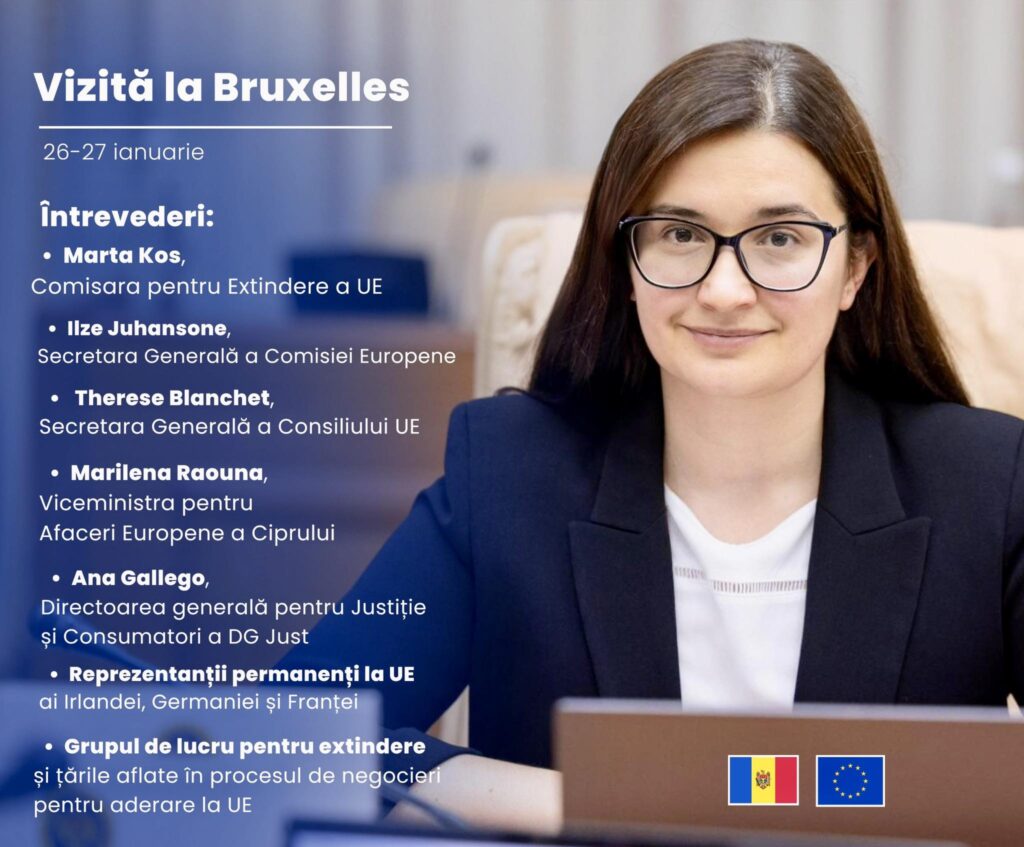 Astfel, oficiala de la Chișinău are programate întrevederi cu Marta Kos, comisară pentru Extinderea UE, Ilze Juhansone, secretară generală a Comisiei Europene, Therese Blanchet, secretară generală a Consiliului UE și cu mulți alți oficiali europeni.