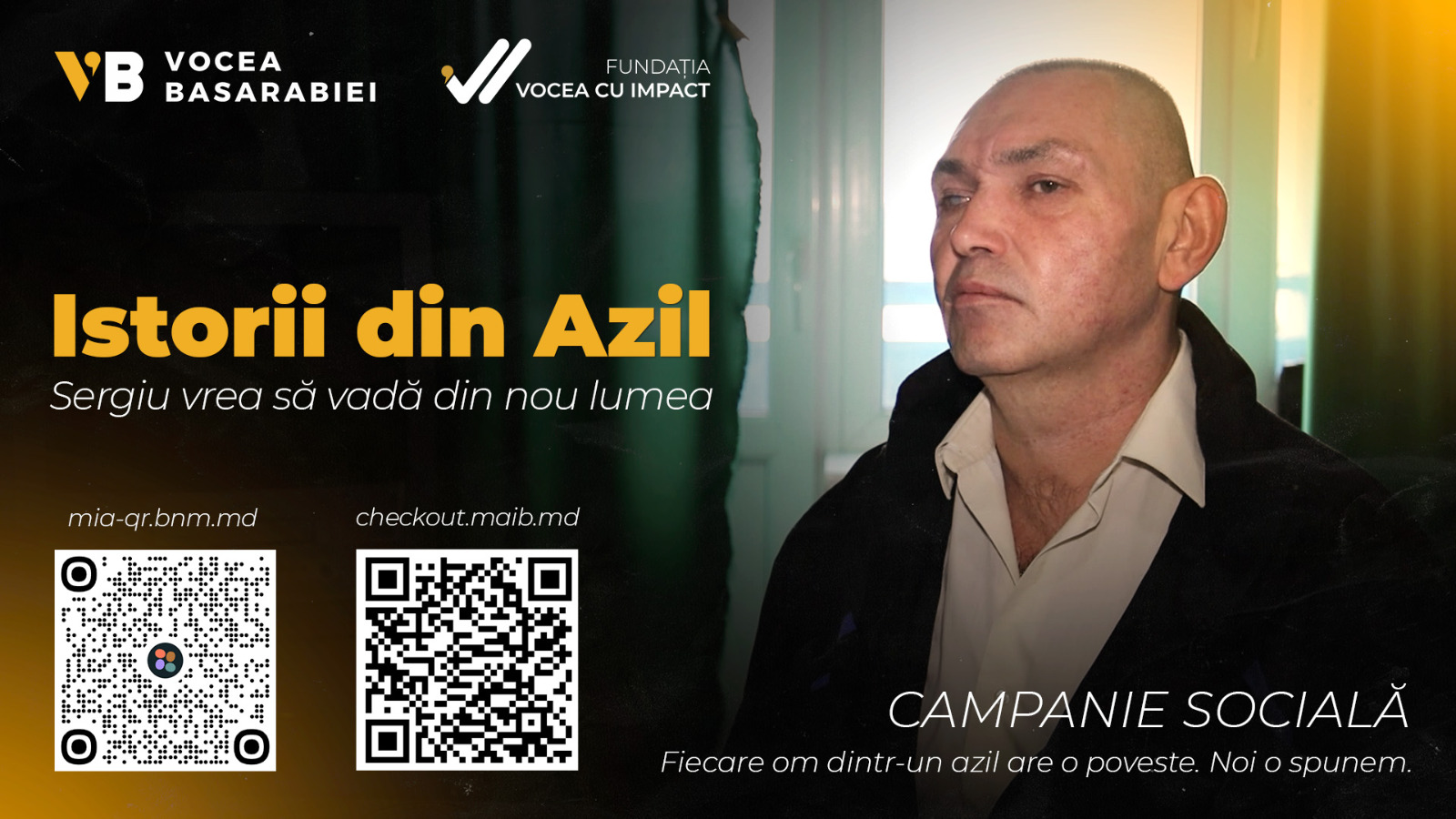 Dacă te-a impresionat povestea lui Sergiu și vrei să contribui la visul său de a vedea din nou lumea, poți dona în cadrul campaniei „Istorii din Azil”, lansată de Vocea Basarabiei.